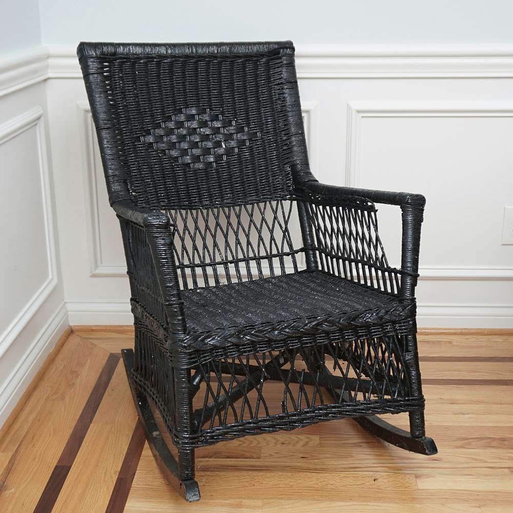 1914 Wicker Rocker Classic Black Wicker Rocker with Indoor\/Outdoor Cushion – Dartbrook Rustic